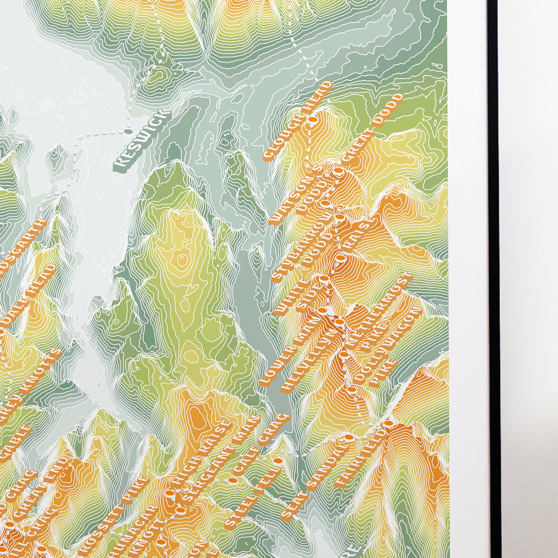 This Bob Graham Round Print is built from LiDAR derived elevation contours which detail the ruggedness and variety in elevation across landscapes, bringing the natural beauty of the world right into your home. This Bob Graham Round poster is the perfect travel poster and unique gift for a hiker or fell runner.