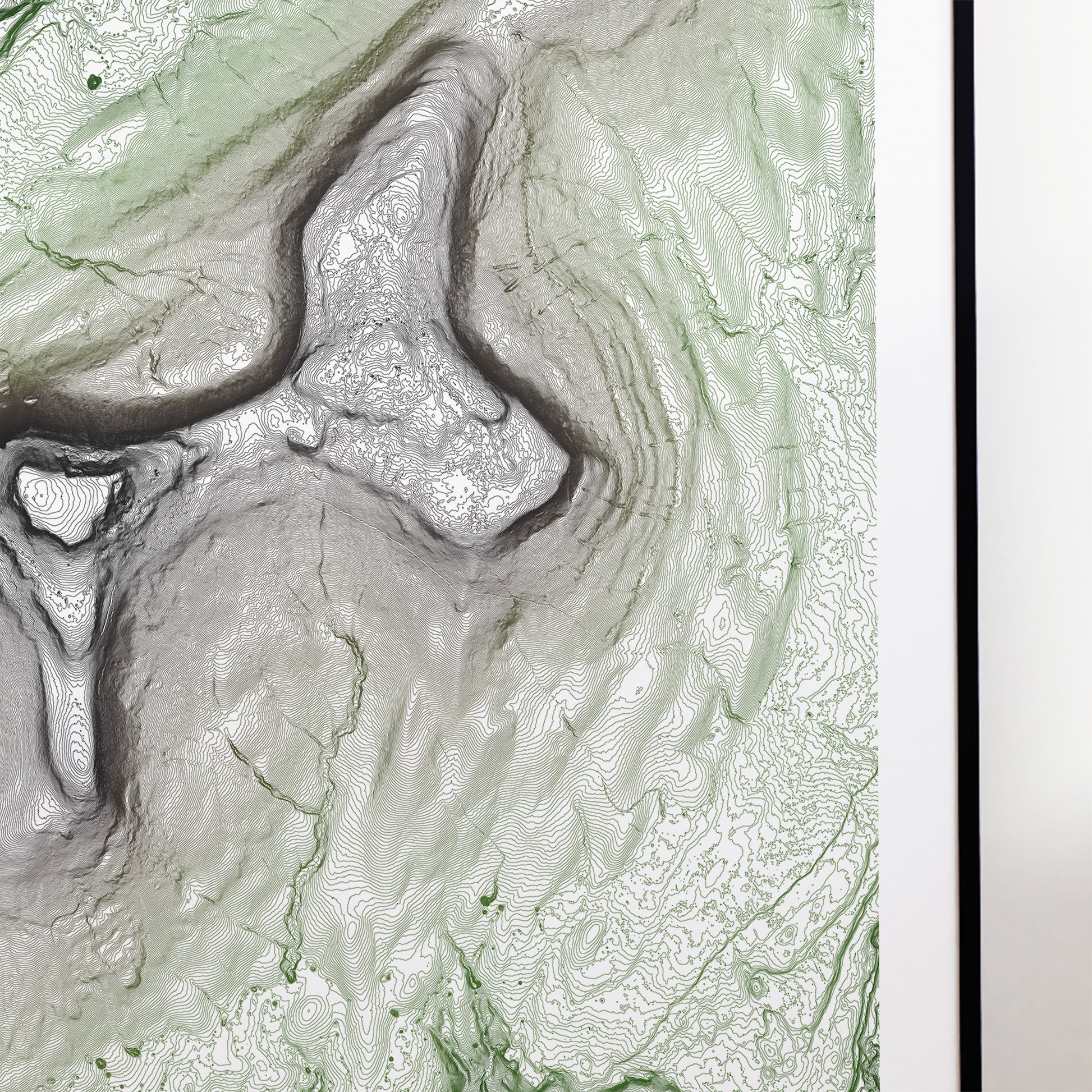 Our topographic map prints are created using high resolution LiDAR data which is processes and presented with the aim of opening a new perspective on natural landscapes. You may even be able to pick out your favourite hiking trails and mountain routes.