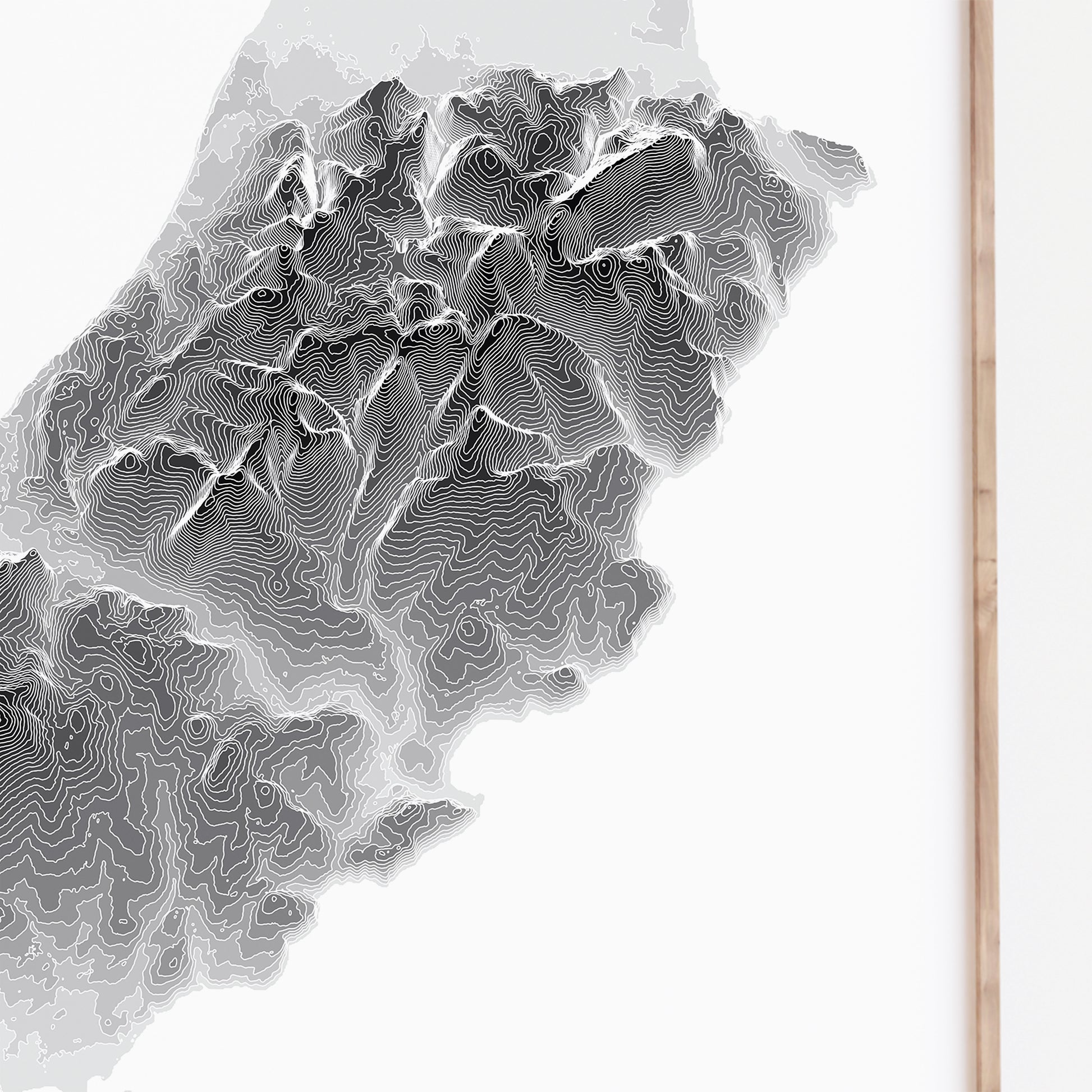 This print is part of our Islands series which covers iconic islands & volcanos from across Europe displaying them in stunning high-resolution topographic contours.