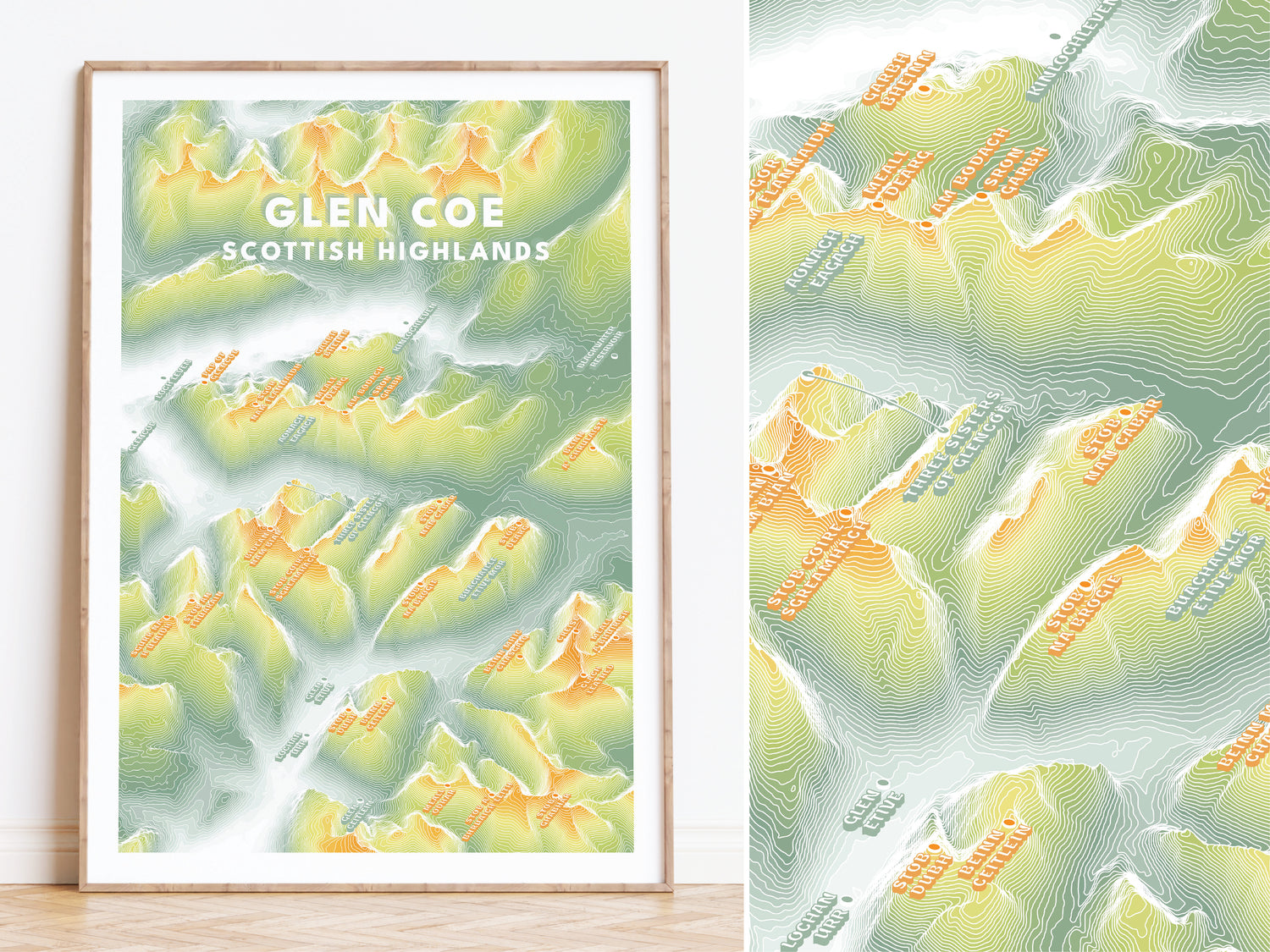 This Munro map poster is built from LiDAR derived elevation contours which detail the ruggedness and variety in elevation across landscapes, bringing the natural beauty of the world right into your home. Our poster prints come in a choice of seven colours but if you'd like something custom, reach out!