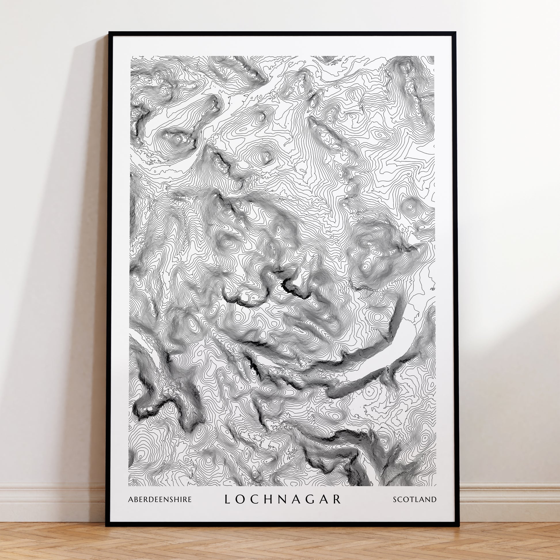 This Munro map poster is built from LiDAR derived elevation contours which detail the ruggedness and variety in elevation across landscapes, bringing the natural beauty of the world right into your home. Our poster prints come in a choice of seven colours but if you'd like something custom, reach out!