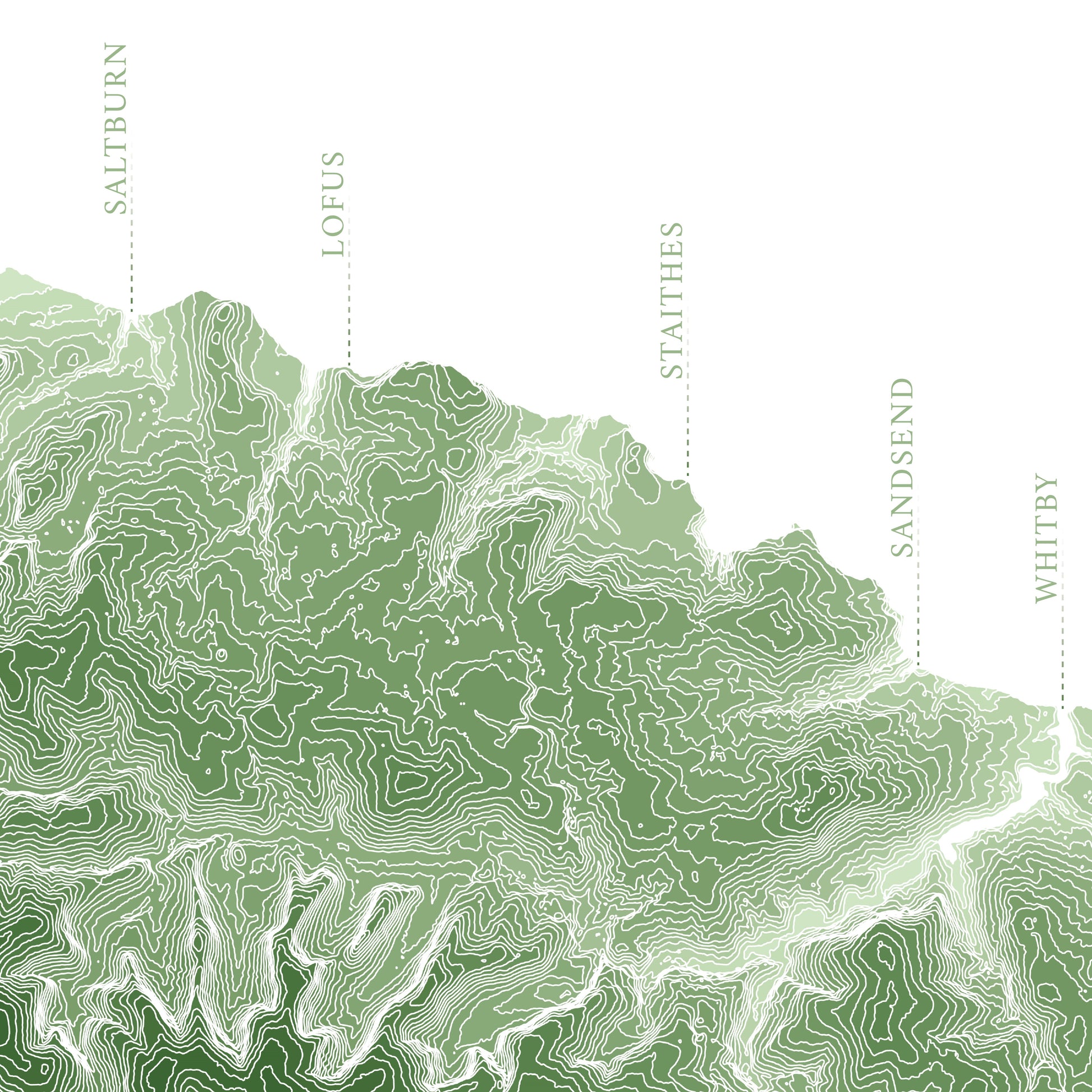 This North Yorkshire print is built from LiDAR derived elevation contours which detail the ruggedness and variety in elevation across landscapes, bringing the natural beauty of the world right into your home. Our poster prints come in a choice of seven colours but if you'd like something custom, reach out! Like the style of this Yorkshire wall art? We offer several Yorkshire prints to match, just browse our Yorkshire collection.