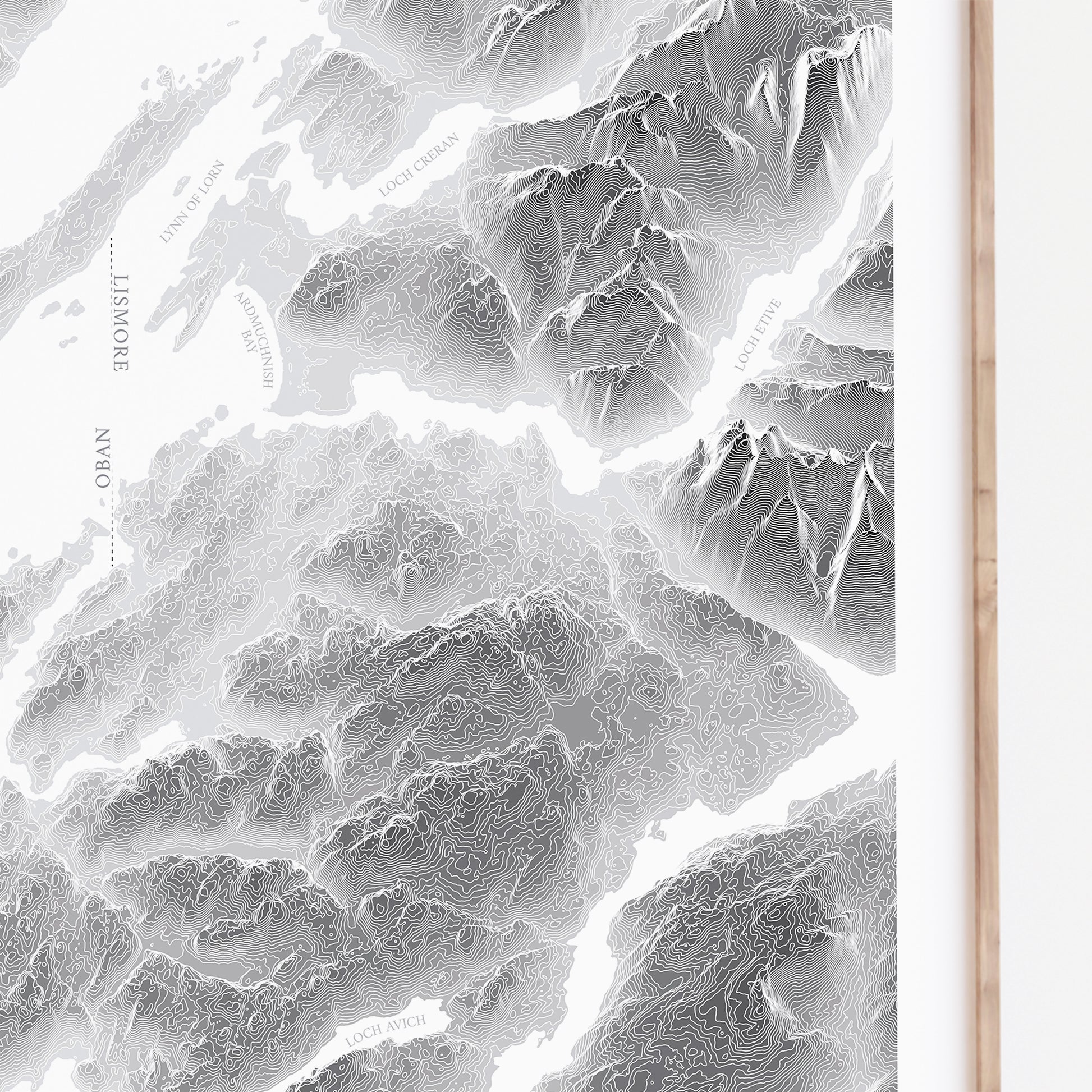 This Oban map poster is built from LiDAR derived elevation contours which detail the ruggedness and variety in elevation across landscapes, bringing the natural beauty of the world right into your home. Our poster prints come in a choice of seven colours but if you'd like something custom, reach out!