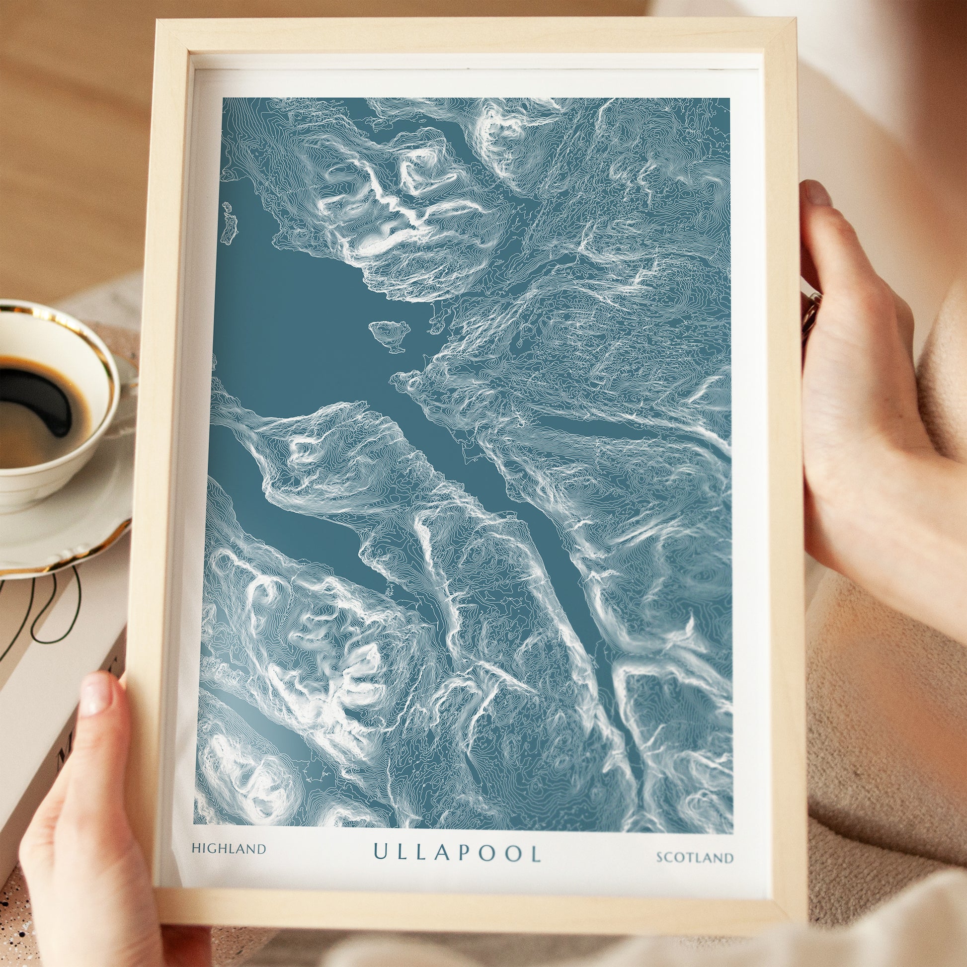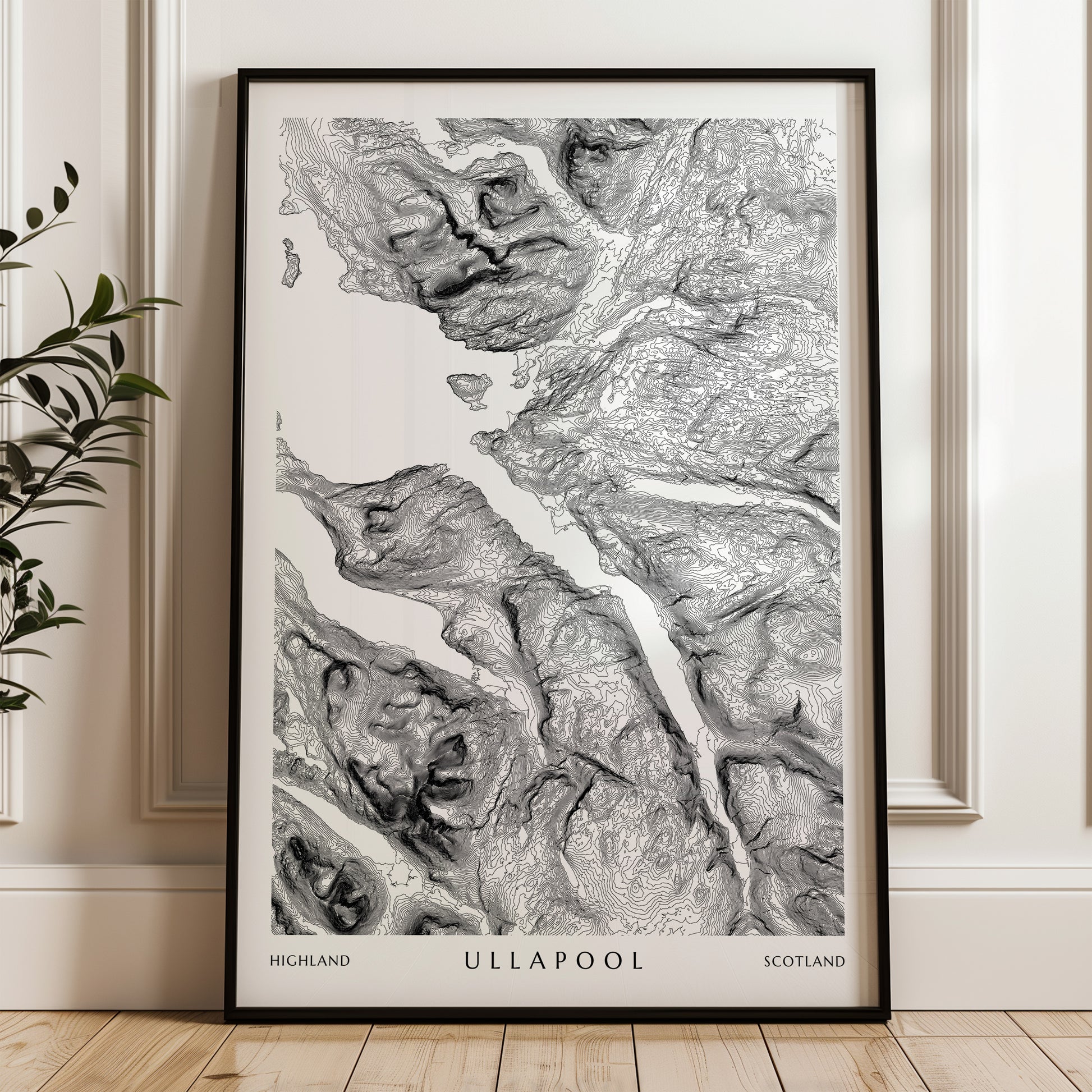 This Ullapool print is the perfect travel poster and unique gift for a hiker, mountaineer or traveller. Like the style of this Ullapool map Print? We offer hundreds of locations to match, just browse our Topographic Maps collection. This Scotland Highlands poster is built from LiDAR derived elevation contours which detail the ruggedness and variety in elevation across landscapes, bringing the natural beauty of the world right into your home.