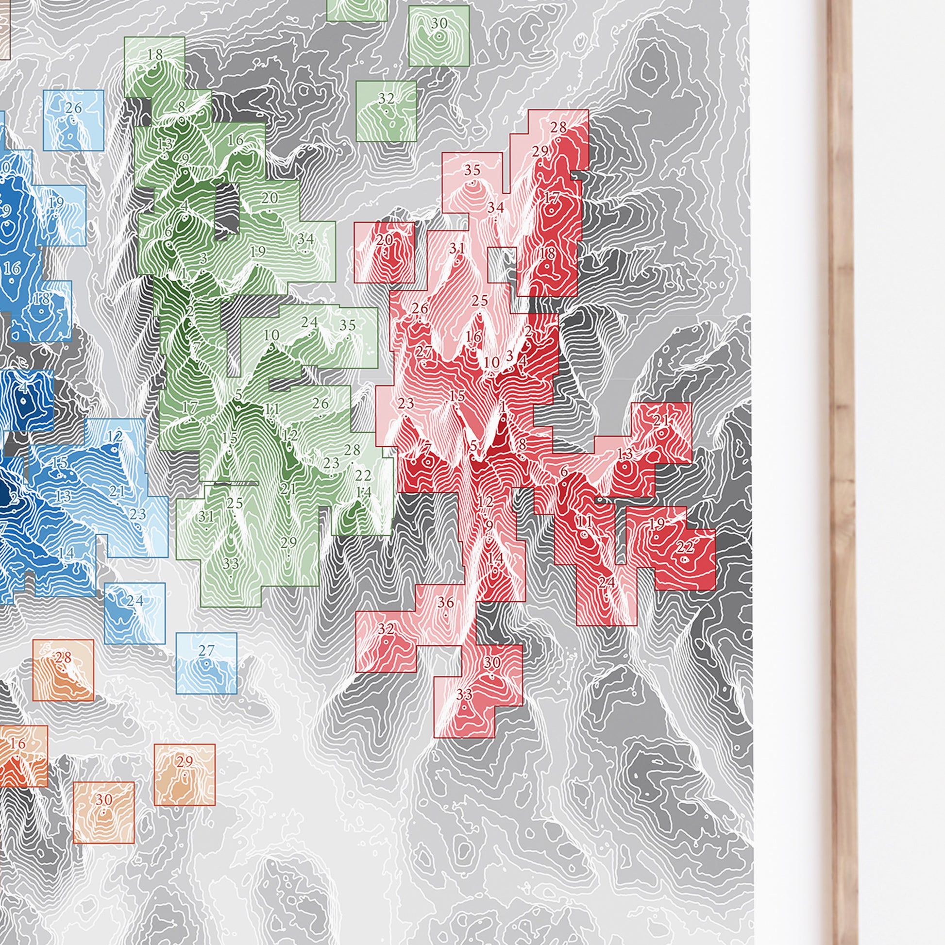 Our topographic map prints are created using high resolution LiDAR data which is processes and presented with the aim of opening a new perspective on natural landscapes. You may even be able to pick out your favourite hiking trails and mountain routes.